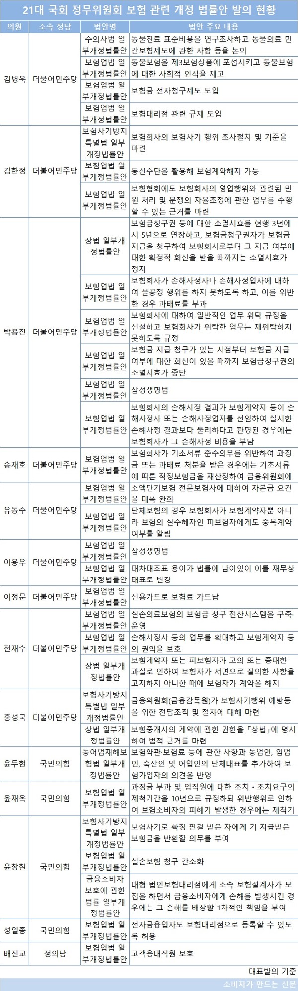 이 가운데 더불어민주당 소속 박용진 의원은 지난 1년간 총 6개의 보험 관련 개정 법률안을 대표 발의해 가장 많은 보험 관련 법안을 발의한 의원으로 확인됐다.