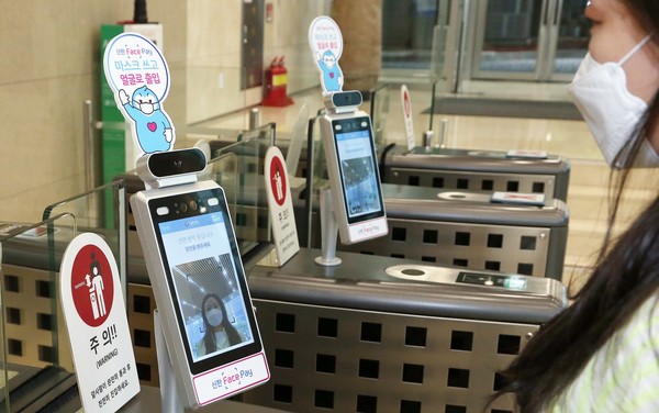 신한카드는 마스크를 착용한 상태에서 노출되는 얼굴 상단부의 특징점을 파악할 수 있도록 신한 페이스페이를 업그레이드 했다.