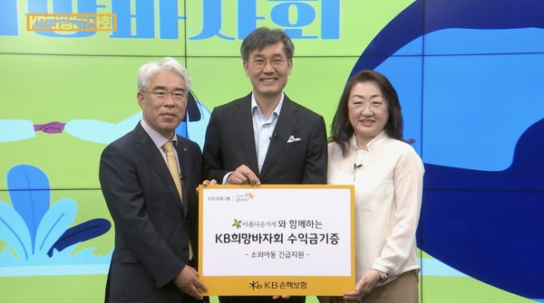 KB손해보험 김기환 사장은 기념사를 통해 "미래는 아껴쓰고 나눠쓰고 바꿔쓰고 다시쓰는 오늘을 토대로 열리는 시간이다"며 "앞으로도 지속적인 나눔 경영을 통해 우리 사회 어려운 이웃들과 희망을 함께 하는 기업이 되고자 노력해 나갈 것"이라고 말했다.