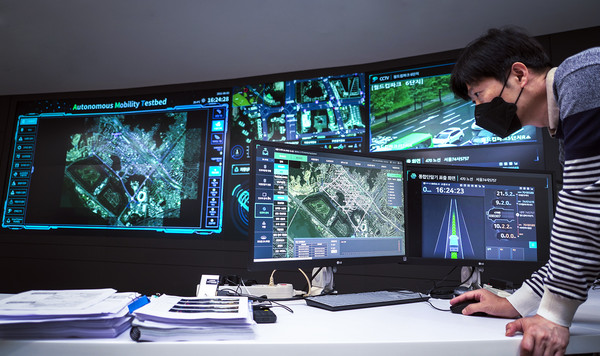 도로와 신호등 외에도 차량과 교통 인프라 간 V2X 실증사업을 위해선 시내버스 1600대와 택시 100대에 5G ADAS와 전용 단말 등을 설치해 운영 중이다.