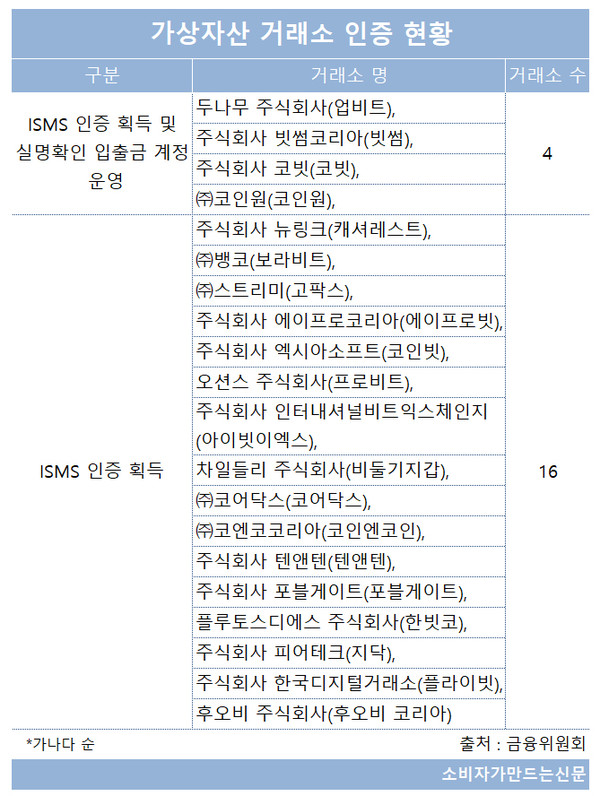 현재 빗썸, 업비트, 코인원, 코빗 등 은행과 실명확인 입출금 계좌 제휴를 맺고 있는 4대 가상자산 거래소가 ‘1호’ 타이틀을 거머쥘 가능성이 높다.