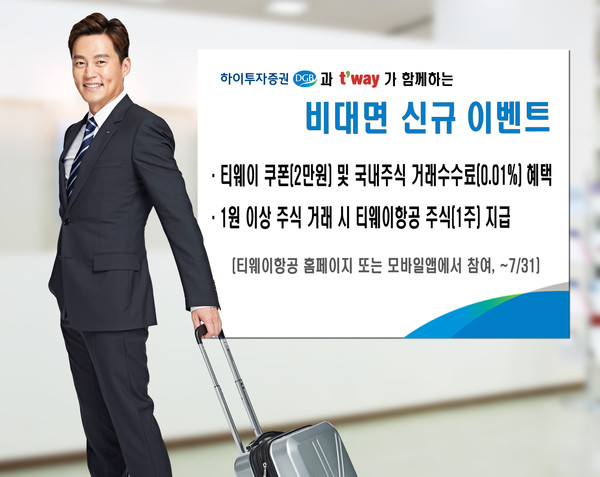 이벤트 기간 동안 티웨이항공 홈페이지 등의 이벤트 페이지 내 하이투자증권 배너 광고를 통해 하이투자증권의 비대면 신규 주식계좌를 개설한 고객에게 리워드 혜택을 제공한다.