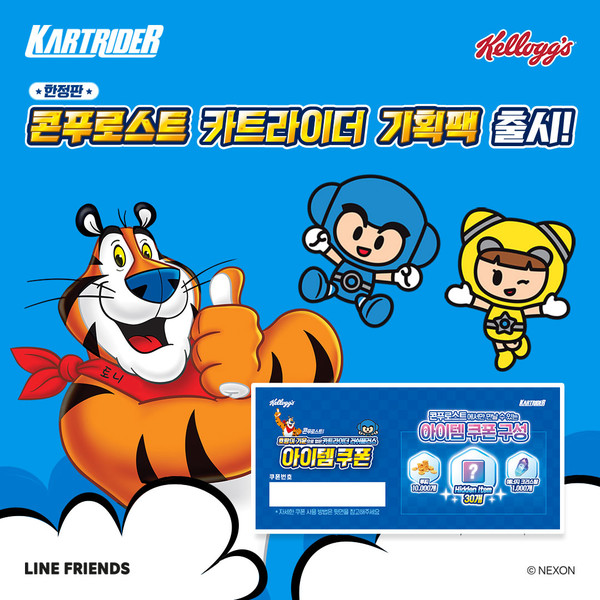 농심켈로그는 넥슨의 레이싱 게임 카트라이더 IP(지식재산권)에 대한 글로벌 파트너십을 맺은 라인프렌즈(LINE FRIENDS)와 협업해 '켈로그 콘푸로스트 카트라이더 기획팩'을 오는 28일부터 한정 판매한다고 밝혔다.