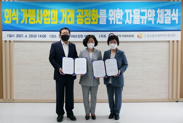 사단법인 글로벌프랜차이즈협의회 주최로 진행된 이날 자율규약 체결식에는 제너시스비비큐 윤경주 부회장을 비롯해 공정거래위원회 조성욱 위원장 및 국내 주요 외식 가맹본부 6개사(총 31개 브랜드) 대표 이사진이 참여했다.