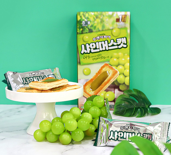해태제과는 "당도 높은 국내산 샤인머스캣을 껍질째 착즙해 곧바로 잼으로 만들었다. 샤인머스캣의 고급스러운 맛과 향이 유달리 진한 이유다. 게다가 생산공장과 가까운 산지에서 갓 수확한 샤인머스캣이라 그만큼 신선하다. 신선함을 위해 당일 생산한 잼만 사용한다"고 설명했다.