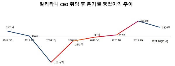 이런 흐름은 지난 1분기 6292억 원 영업이익이란 실적 호조로 이어졌다. 코로나19 백신 접종이 본격화 하면서 항공 여객 수요가 증가하고 신규 고도화시설(RUC&ODC)도 4분기부터 풀가동하는 등 호재가 겹쳤다.