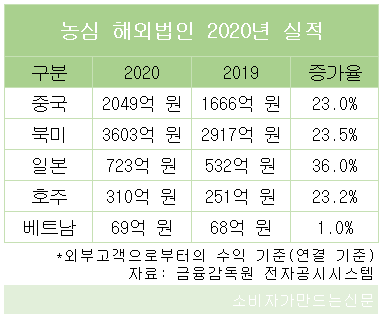 북미와 중국, 일본, 호주, 베트남 현지법인의 지난해 매출도 일제히 올랐다. 연결 기준으로 일본 36%(723억 원), 북미 23.5%(3603억 원), 호주 310억 원(23.2%), 중국 23%(2049억 원), 베트남 1%(69억 원) 순이다.