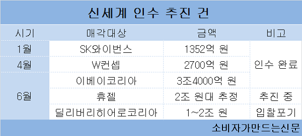 신세계는 올해 상반기 야구, 패션, 이커머스, 배달앱 플랫폼 등 다양한 업종을 아우르며 총 4건의 예비입찰에 참여했다. 그 중 한 건은 예비입찰 단계에서 포기했고, 본입찰에 참여했던 3건은 모두 인수에 성공했다. 최근에도 국내 1위 보톡스 기업의 인수를 추진하고 있다.