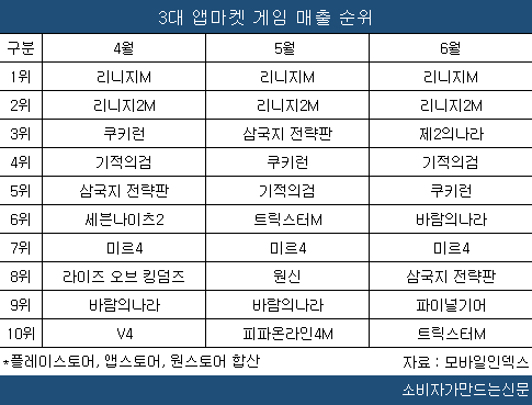 하지만 6월 말엔 일 매출 성적이 20위대로 수직 하락했다. 월간 매출 순위에서도 5월 6위에서 6월엔 10위로 밀려났다.