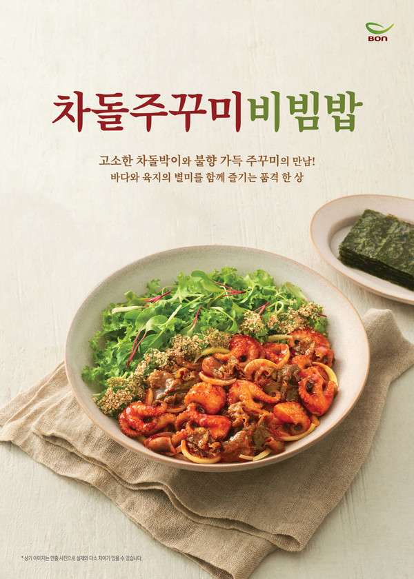 본죽&비빔밥에서는 프리미엄 식재료를 활용한 한상 메뉴 차돌주꾸미비빔밥(1만2000원)을 맛볼 수 있다. 차돌박이와 주꾸미를 올려 바다와 육지의 별미를 모두 맛볼 수 있는 메뉴라는 설명이다. 주꾸미는 체내 콜레스테롤 수치를 낮추고 피로 회복을 돕는 타우린이 다량 함유돼 있다.