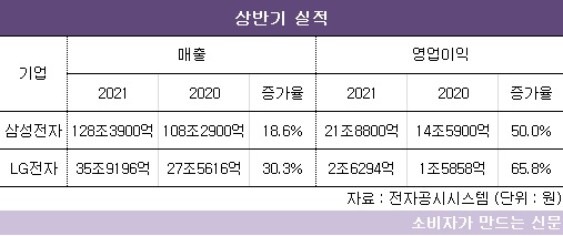 삼성·LG전자 상반기 영업이익 50% 이상 급증...연간 최대 매출 신기록 눈앞
