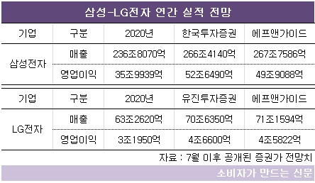 삼성전자와 LG전자는 연간 기준으로도 견고한 실적 성장세를 이어갈 것으로 예상된다.