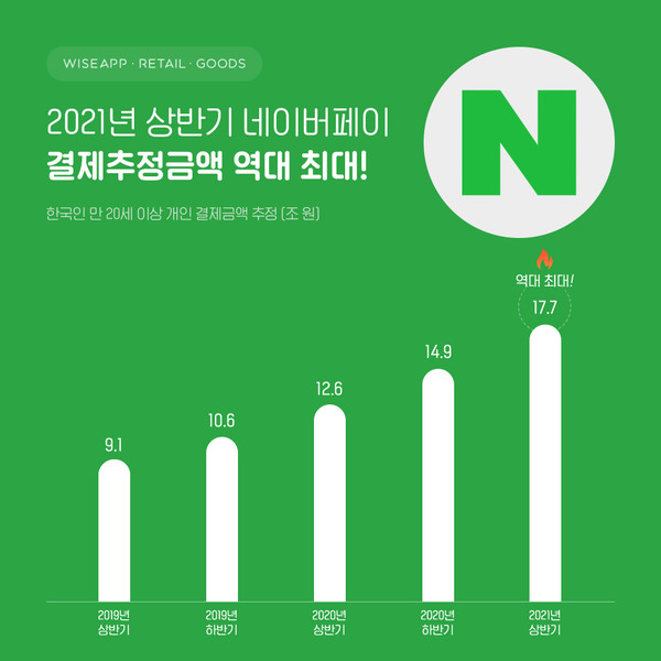 와이즈앱, 상반기 네이버페이 결제추정액 17조7000억...전년 대비 41% 증가