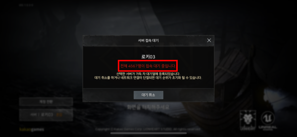 문제는 이용자들이 한꺼번에 몰리는데 서버가 이를 수용하지 못해 게임 접속 자체가 불가한 사례가 빈번하다는 것이다. 운영진은 출시 일주일만에 네 번에 걸쳐 18개 서버를 증설하고 로그인 서버 초기화를 매시 30분마다 진행 중이지만 긴 대기열 현상은 여전히 지속되고 있다.