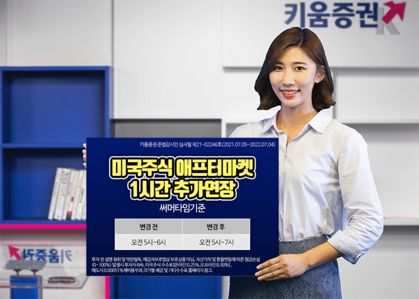 키움증권 관계자는 “고객님들의 매매 기회를 확대하기 위해 애프터마켓 거래시간을 1시간 추가 연장했다”며 “다만 애프터마켓은 정규장 대비 거래량이 적고 시장조성자가 없기 때문에 적은 거래량에도 주가 변동 등락폭이 커질 수 있어 주의해야 한다”고 말했다.