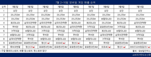 하위권에선 ▶‘피파온라인4M’이 굳건히 한 자리를 지키고 있는 가운데, 3일부터 ▶중국 게임사 미호요의 ‘원신’이 무려 20계단을 뛰어올라 10위권 진입에 성공했다.
