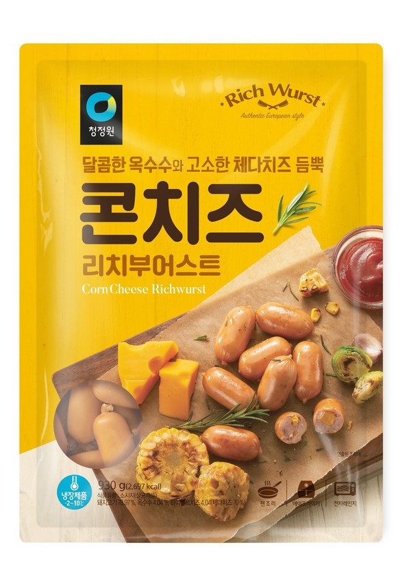 신제품 콘치즈 리치부어스트는 100% 국내산 돼지고기에 체다치즈와 옥수수를 넣은 제품이다. 육즙과 치즈 풍미에 옥수수 알갱이가 톡톡 터져 씹는 재미를 느낄 수 있다.