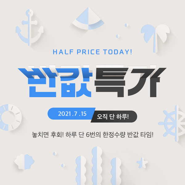 반값특가 상품은 행사 당일 하루 6번(0시, 7시, 10시, 13시, 16시, 19시) 정해진 시간 내 ‘타임딜’로 공개한다. 시간대별 10개씩, 총 60개 반값 특가 상품을 한정 수량으로 판매한다.