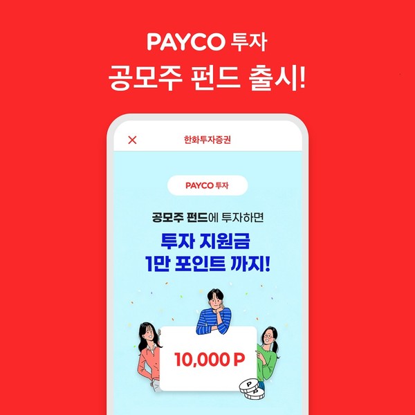 NHN페이코는 펀드 출시를 기념해 펀드 신규 가입자 대상으로 페이코 포인트를 선착순 증정하는 이벤트를 진행한다. 페이코 앱에서 공모주 펀드를 신규 매수 후 익월 말까지 잔고를 보유한 선착순 1000명에게는 1만 페이코 포인트를 증정한다. 페이코 앱에서 한화투자증권 CMA를 신규 개설할 경우 1만 포인트가 추가로 지급된다.