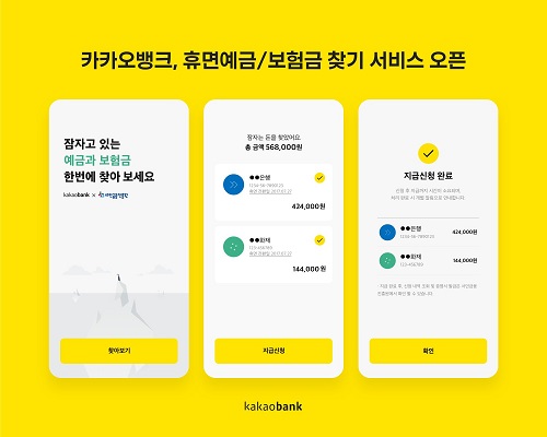 카카오뱅크 관계자는 "고객들이 잊고 있던 휴면예금과 휴면보험금을 카카오뱅크 앱에서 편리하게 찾을 수 있도록 하는 데 서비스 주안점을 뒀다"고 말했다.