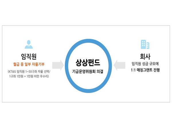 2011년 출범한 상상펀드는 KT&G만의 독창적인 사회공헌기금이다. 임직원이 매월 급여의 일정 금액을 자발적으로 기부하면 회사가 동일한 금액을 더하는 '매칭 그랜트(Matching Grant)' 형태로 이뤄지고 있다.