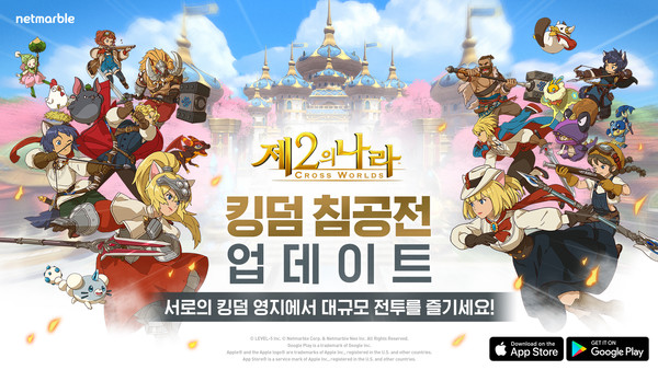 넷마블(대표 권영식, 이승원)이 22일 모바일 RPG 제2의 나라: Cross Worlds의 '킹덤 침공전' 업데이트를 진행했다.