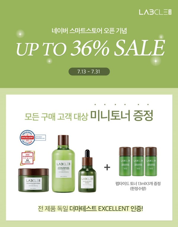 이번 인증에 힘입어 현대약품은 네이버 스마트스토어를 오픈하고 랩클 펩타이드 화장품 3종 세트에 대한 할인 프로모션을 진행한다.