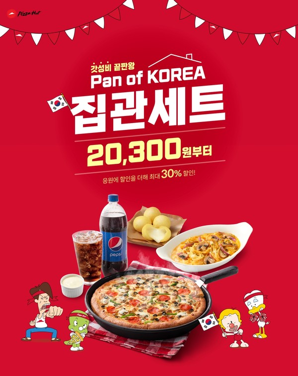 피자헛 관계자는 "코로나19 확산 방지를 위해 집에서 안전하게 응원할 수 있도록 이번 프로모션을 준비했다. 푸짐한 세트로 구성된 피자를 즐기며 대한민국을 응원하는 열정적인 기운을 전달하길 바란다"고 전했다.