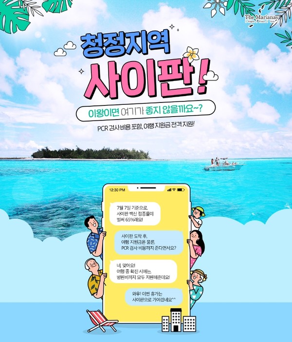 사이판 정부에서는 지정된 여행사를 통해 예약한 패키지 고객에 한해서만 입국을 허용하며 총 2번의 PCR 검사(사이판 체류 5일차, 귀국 전 72 시간 이내) 비용을 전액 지원한다.