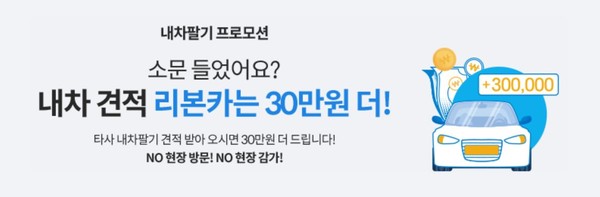 오토플러스㈜(대표 이정환)가 타사 견적보다 30만 원 더 높은 매입 가격을 보상하는 비대면 차량 매입 서비스 ‘내차팔기’ 프로모션을 9월 30일까지 실시한다.