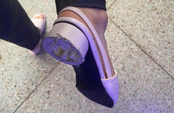 유명 제화브랜드에서 구매한 구두의 뒷굽이 착용한 지 몇 시간 만에 빠졌다며 소비자가 황당해했다.