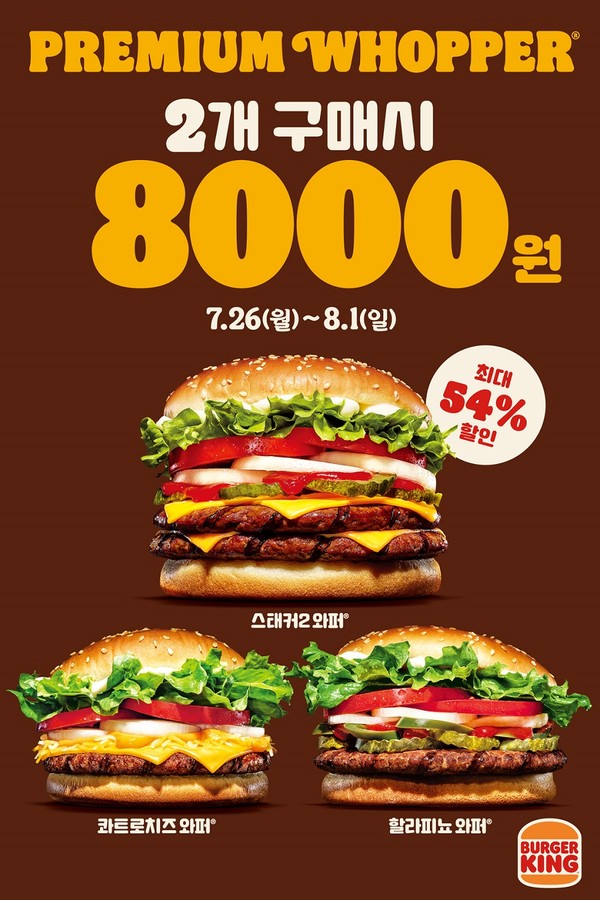 버거킹, 프리미엄 와퍼 2개 8000원 프로모션…최대 54% 할인