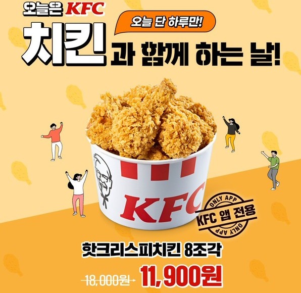 글로벌 치킨 브랜드 KFC는 대한민국의 축구 승리를 기원하며 28일 단 하루 치킨 버켓을 1만1900원에 제공하는 초특가 할인 프로모션을 진행한다고 밝혔다.