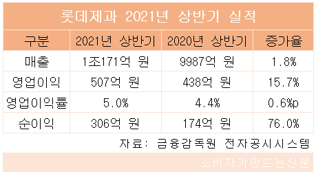 롯데제과는 연결 기준으로 올해 상반기 매출 1조171억 원, 영업이익 507억 원, 순이익 306억 원을 기록했다고 28일 공시했다.
