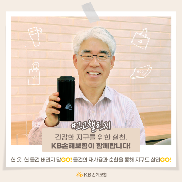 티웨이항공 정홍근 사장의 추천을 받은 김기환 사장은 이날, 사용하지 않는 물품을 버리지 않고 나누는 작은 행동만으로도 이산화탄소를 줄이고 환경을 지키는데 동참할 수 있다는 취지로 ‘헌 옷,헌 물건 버리지 말Go! 물건의 재사용과 순환을 통해 지구도 살리Go!’라는 문구의 사진을 ‘#고고챌린지, #KB희망바자회, #ESG경영’ 등의 해시태그를 달아 KB손해보험 공식 인스타그램을 포함한 SNS에 게시했다.
