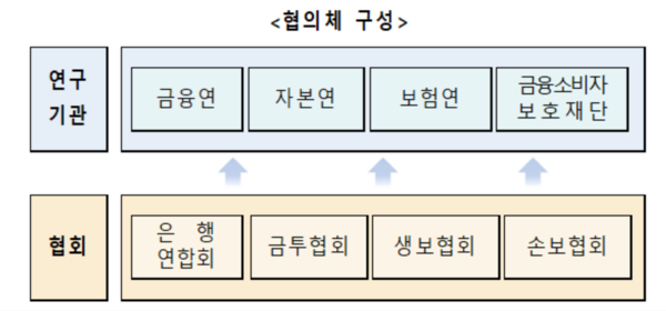 협의체는 4개의 연구기관과 4개 협회로 구성된다. 금융당국은 협의체 운영과정에서 4개 협회 외 기관(여신금융협회, 저축은행중앙회, 신협중앙회, 대부업협회, 핀테크 산업협회 등)의 의견도 수렴할 계획이다.