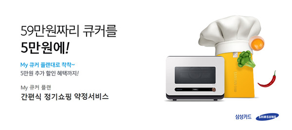 삼성카드는 삼성전자와의 협업을 통해 간편식 정기쇼핑 약정서비스 'My 큐커 플랜'을 선보인다고 밝혔다.