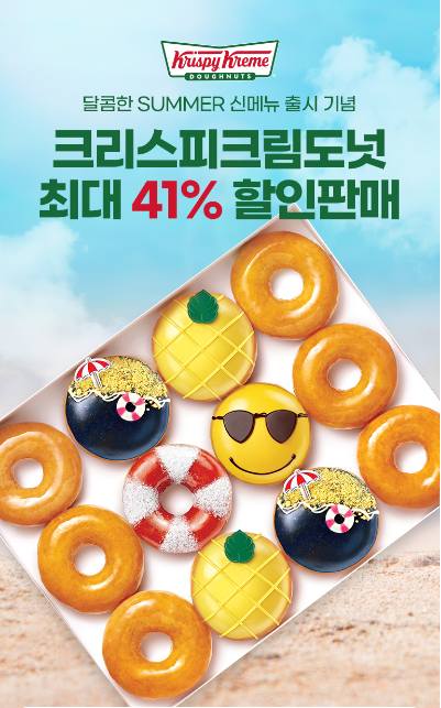 행사 제품은 △글레이즈가 토핑된 쉘도넛에 우유크림을 넣은 우유크림 듬쁙 도넛과 딸기 우유크림을 채운 딸기 우유크림 듬뿍 도넛 등이 포함된 '우유크림 듬뿍 하프더즌' △태양, 해변가, 열대과일 등 여름철 소재를 활용한 '썸머바이브 (더블)더즌' △크리스피크림 도넛 84년 전통 시그니처 메뉴인 '오리지널 글레이즈드 더즌' △무더운 여름철 대용량으로 즐기는 '24OZ 아이스 아메리카노' 등이다.