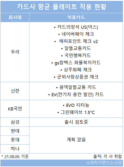 신한카드는 지난해 10월 광역알뜰교통 카드, EV(전기차 충전 할인) 카드 등 소비자들이 매일 이용하는 교통 수단 혜택을 겸비한 카드 중심으로 항균 플레이트를 적용해오고 있다. 과거 한정판으로 항균 플레이트를 출시한 적이 있지만 현재는 두 가지 상품이 유일하다.