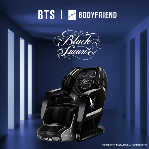 ‘팬텀Ⅱ BTS 블랙스완’은 바디프랜드가 방탄소년단과 콜라보 한 최초의 제품이다. 바디프랜드의 대표 인기 모델인 ‘팬텀Ⅱ’에 방탄소년단 정규 4집 앨범 수록곡 ‘Black Swan’의 공식 아트워크 디자인과 방탄소년단 로고가 곳곳에 새겨진 것이 특징으로, 헤드쿠션 부분에는 한정판 스페셜 넘버가 자수로 새겨져있다. 가격은 680만 원이다.