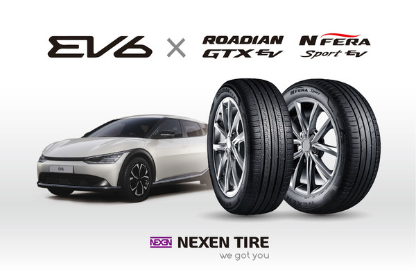 ‘EV6’는 현대차그룹의 전기차 전용 플랫폼 ‘E-GMP’를 기반으로 제작한 기아의 첫 전용 전기차 모델이다. ‘EV6’에는 넥센타이어의 ‘로디안 GTX EV’와 ‘엔페라 스포츠 EV’ 제품이 공급된다. ‘로디안 GTX EV’는 타이어의 안전성, 내구성, 저소음 등에 탁월한 장점이 있는 프리미엄 타이어다.