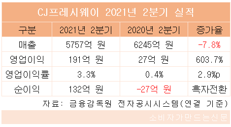 CJ프레시웨이, 2분기 사업구조 재편으로 매출 8% 줄었지만 영업이익 600% 늘어