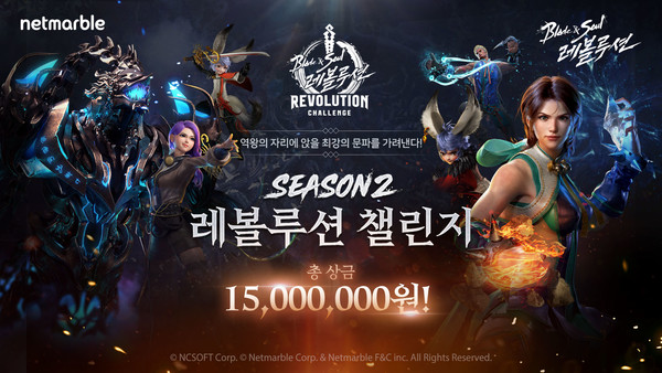 넷마블(대표 권영식, 이승원)dl '블레이드 & 소울 레볼루션’의 온라인 게임대회 '레볼루션 챌린지 시즌2'의 참가자를 모집한다고 19일 밝혔다.