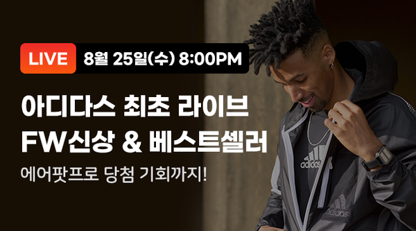 생방송 전용 이벤트도 마련했다. 방송이 진행되는 오후 8시부터 9시까지 간편결제 ‘스마일페이’에 등록된 삼성카드로 결제할 경우, 최종 결제액의 15%가 추가 할인된다. 방송 중 구매 고객 선착순 300명에게는 ‘아디다스 페이스 마스크’를 증정하고, 15만 원 이상 구매한 고객 20명을 추첨해 ‘에어팟 프로’를 제공한다. 이번 행사를 통해 아디다스 제품을 구매한 고객 중 최대 금액을 주문한 일명 ‘구매왕’ 고객 5명에게도 ‘에어팟 프로’를 증정한다.