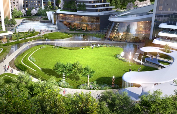 단지 내 초대형 중앙광장은 ‘보타닉 파크 플라자’로 명명됐으며 개방감을 극대화하는 50m 너비의 통경축에 기반해 다수의 하이엔드 조경 시설들과 연계된다.