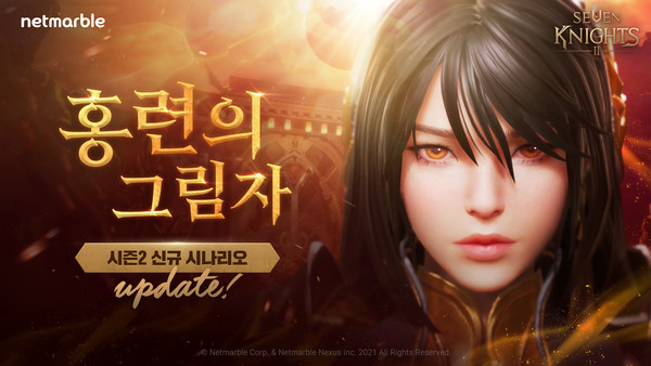 홍련의 그림자는 세븐나이츠 인기 영웅 '아이사의 황제 린(이하, 린)'이 주인공으로, 아이사를 위협하는 거대한 음모를 발견하고, 나라와 백성을 구하기 위해 출정한 '린'의 여정의 담고 있다.