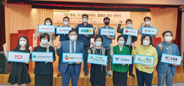 이번 선언식은 자원순환사회연대, (사)한국온라인쇼핑협회, (사)한국포장재재활용사업공제조합과 8개 온라인 유통 기업이 참여해 지속 가능한 지구를 위해 1회용품, 과대포장은 줄이고 친환경 포장 시스템 실천을 위해 노력하기로 선언했다.