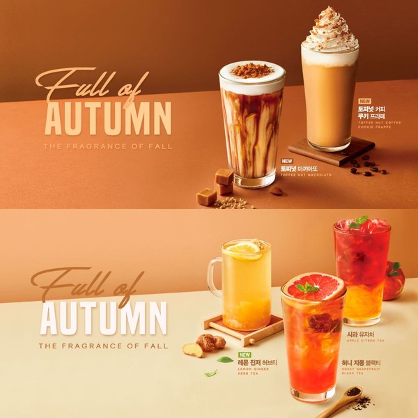 ‘Full of Autumn’라는 콘셉트로 토피넛, 레몬, 진저, 자몽, 사과, 유자 등 식재료를 활용해 가을의 향과 색감을 담았다는 설명이다.