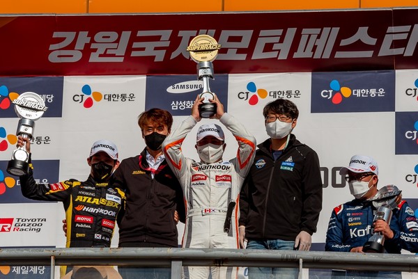 3위도 한국타이어를 장착한 ‘서한GP’의 김중군 선수가 차지했다. 뒤를 이어 4위는 ‘아트라스비엑스 모터스포츠’의 최명길 선수, 5위는 ‘서한GP’의 정회원 선수가 이름을 올렸다.