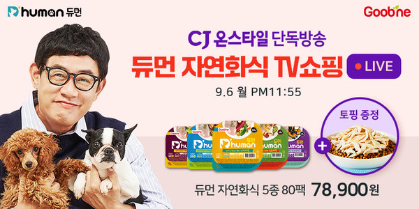 지앤건강생활 박상면 대표는 "듀먼 자연화식을 믿고 구매해준 소비자들에게 보답하고자 추석 특집으로 CJ온스타일 방송 기획전을 준비하게 됐다. 이번 이벤트가 다가오는 추석을 맞아 소비자들과 반려견 모두에 풍성한 한가위 선물이 되길 바란다"고 말했다.